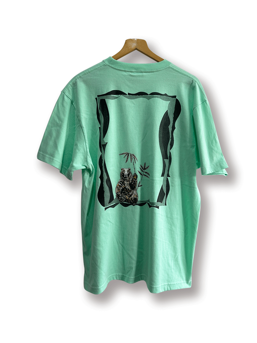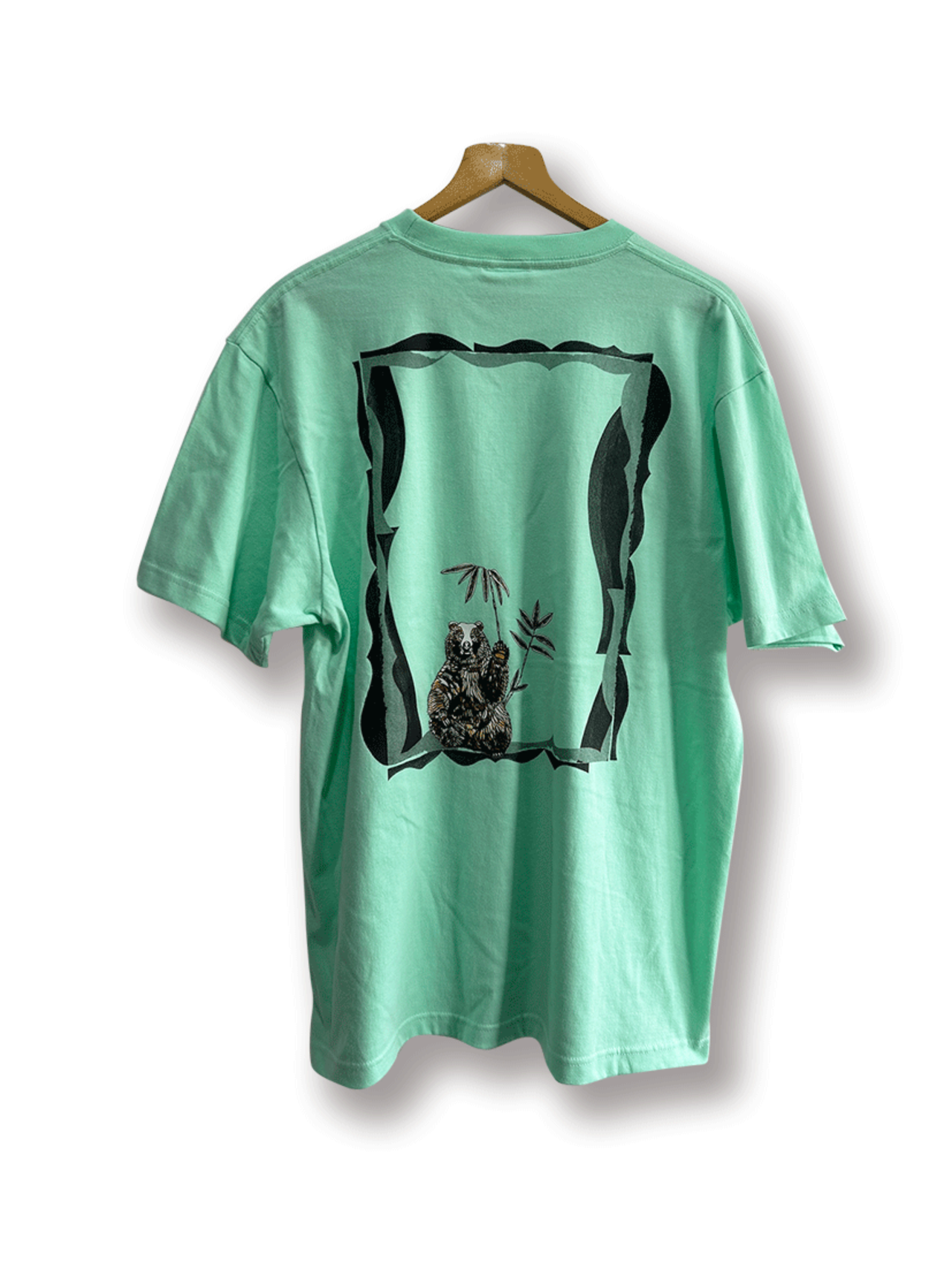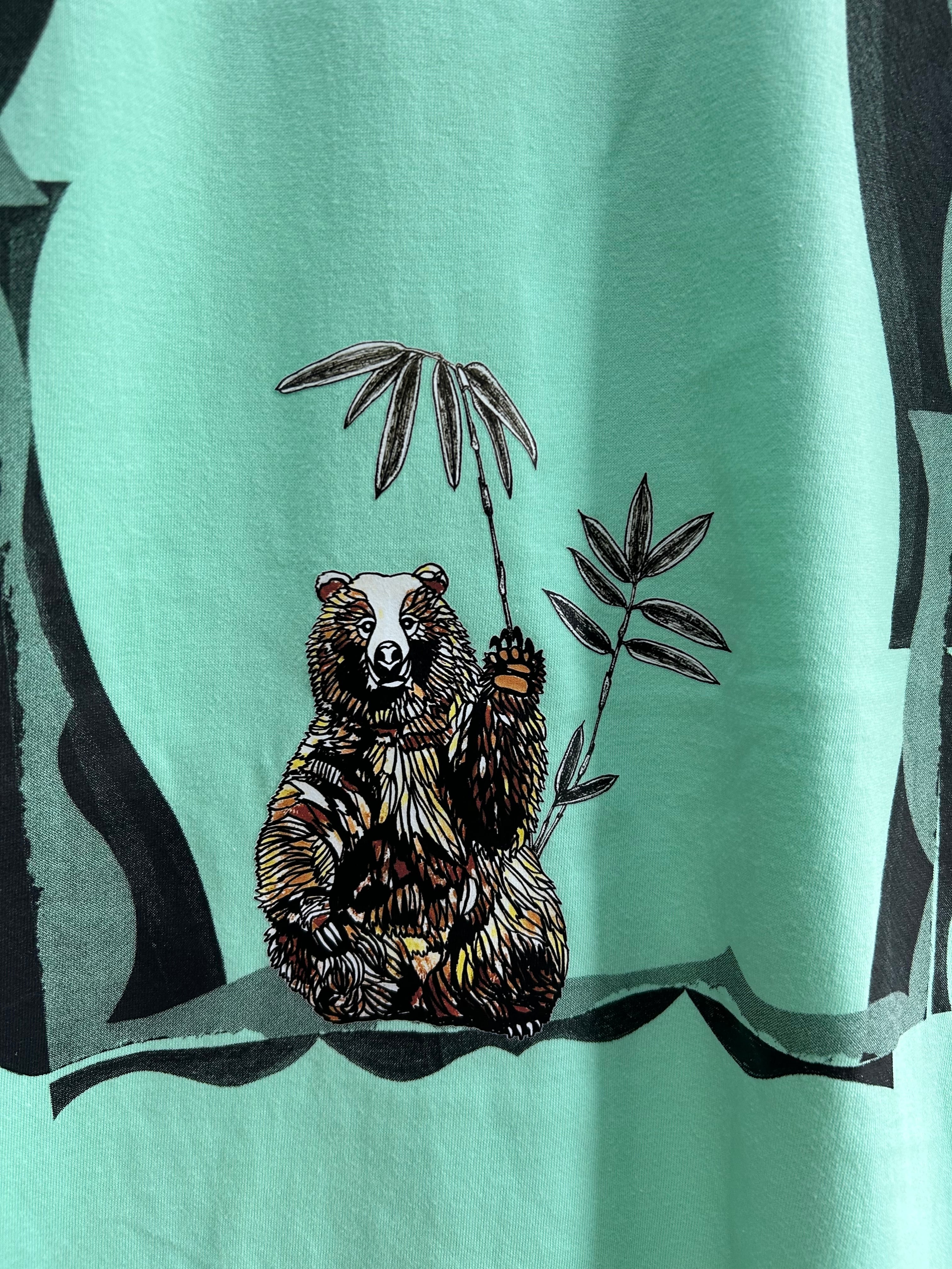 背面は枠がシルクスクリーンプリントしてあり、熊のイラストはアイロンプリントしてあります。